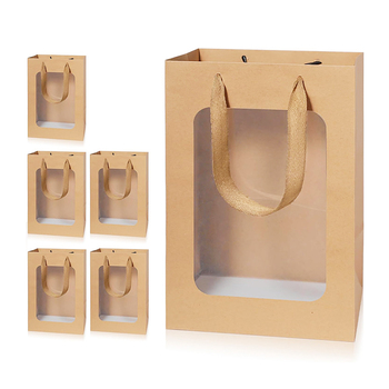 Transparente Einkaufstasche aus Kraft papier mit Fenster öffnung, Geburtstags geschenkt üte, maßge schneiderte Einkaufstasche für tragbare Supermarkt kleidung
